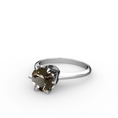 Dumanlı kuvars 8 ayar beyaz altın yüzük