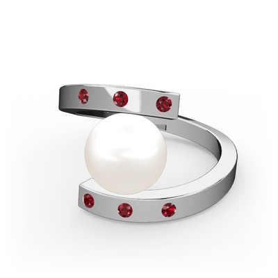 Inci ve garnet 14 ayar beyaz altın yüzük