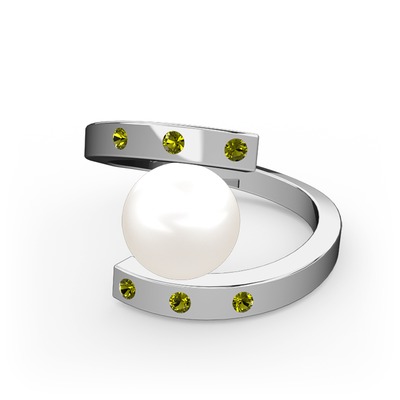 Inci ve peridot 8 ayar beyaz altın yüzük
