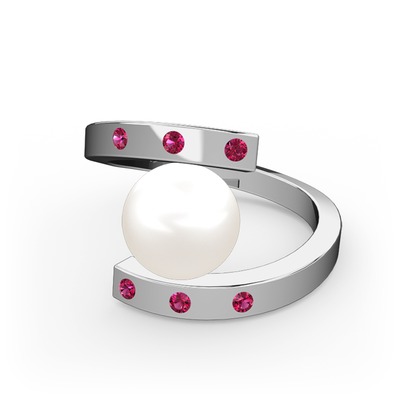 Inci ve rodolit garnet 8 ayar beyaz altın yüzük