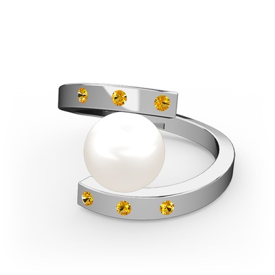 Inci ve sitrin 8 ayar beyaz altın yüzük