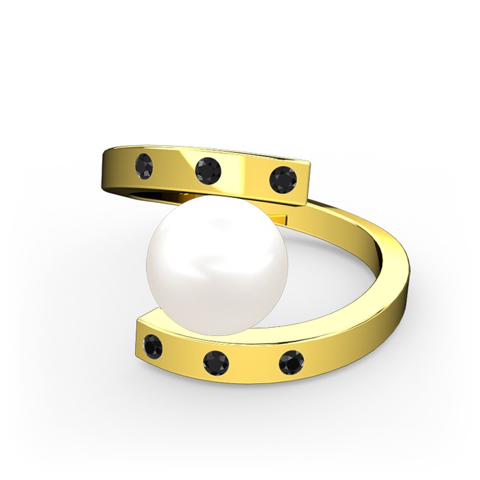 Inci ve siyah zirkon 18 ayar altın yüzük