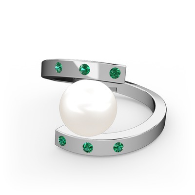Inci ve yeşil kuvars 8 ayar beyaz altın yüzük