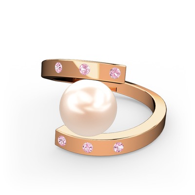 Pembe inci ve pembe kuvars 14 ayar rose altın yüzük