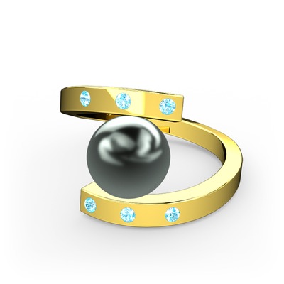 Siyah inci ve akuamarin 8 ayar altın yüzük