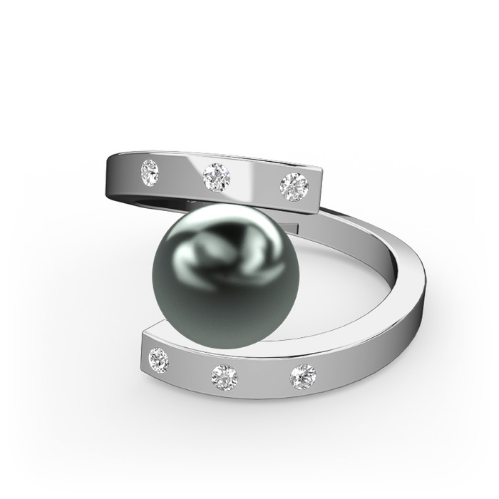 Siyah inci ve beyaz zirkon 925 ayar gümüş yüzük