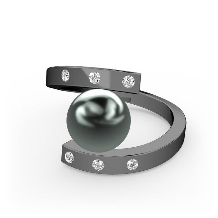 Siyah inci ve beyaz zirkon 925 ayar siyah rodyum kaplama gümüş yüzük