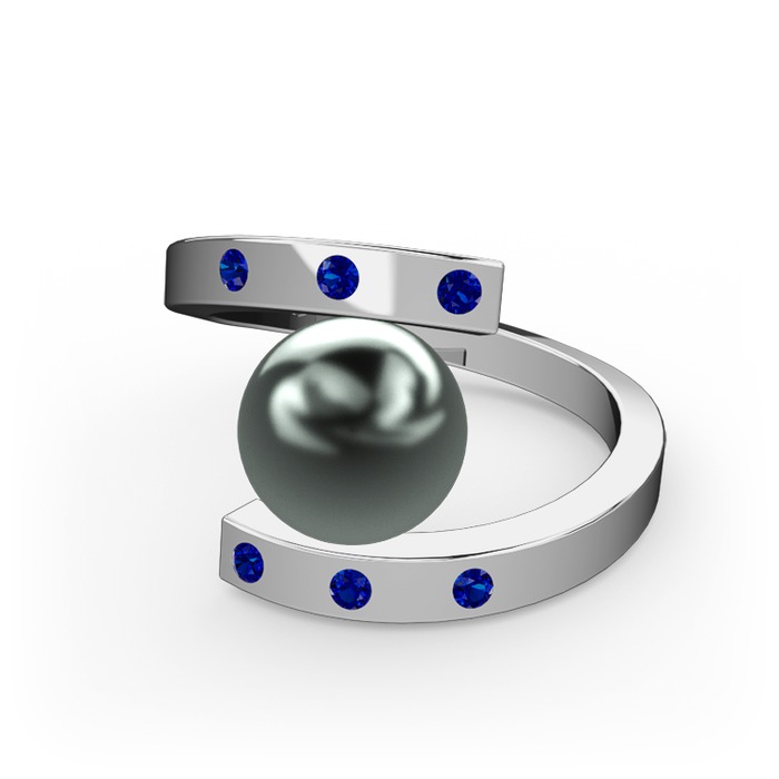 Siyah inci ve lab safir 8 ayar beyaz altın yüzük