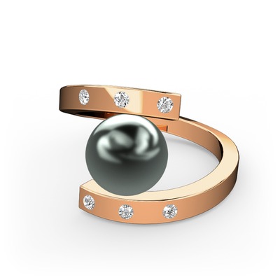 Siyah inci ve pırlanta 925 ayar rose altın kaplama gümüş yüzük (0.09 karat)