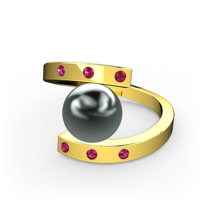 Siyah inci ve rodolit garnet 18 ayar altın yüzük