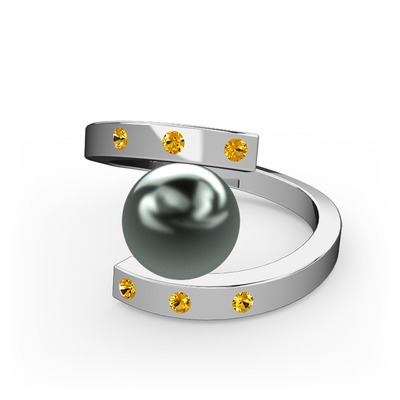 Siyah inci ve sitrin 18 ayar beyaz altın yüzük