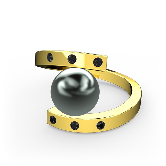 Siyah inci ve siyah zirkon 18 ayar altın yüzük