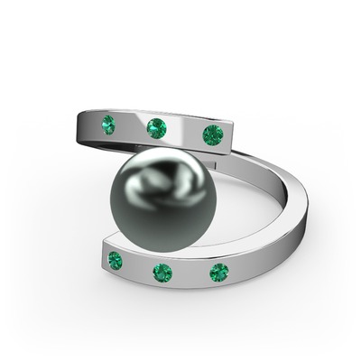 Siyah inci ve yeşil kuvars 8 ayar beyaz altın yüzük