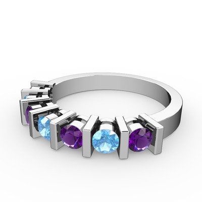 Akuamarin ve ametist 18 ayar beyaz altın yüzük