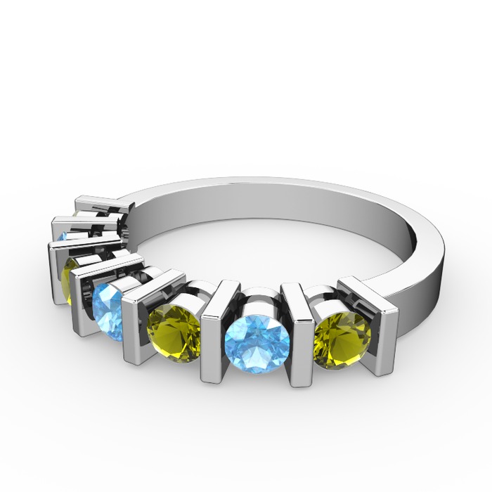 Akuamarin ve peridot 18 ayar beyaz altın yüzük