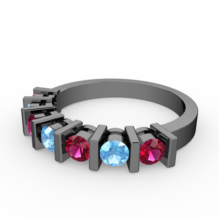 Akuamarin ve rodolit garnet 925 ayar siyah rodyum kaplama gümüş yüzük