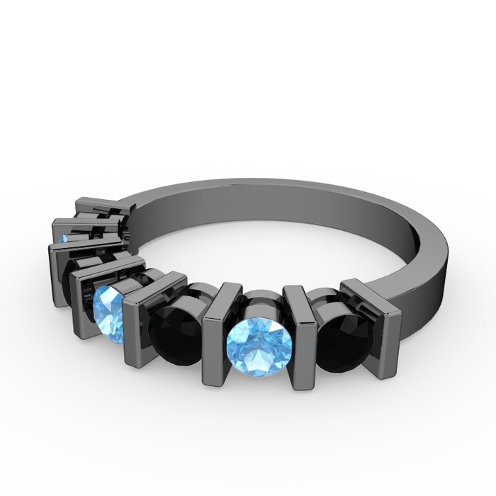 Akuamarin ve siyah zirkon 925 ayar siyah rodyum kaplama gümüş yüzük
