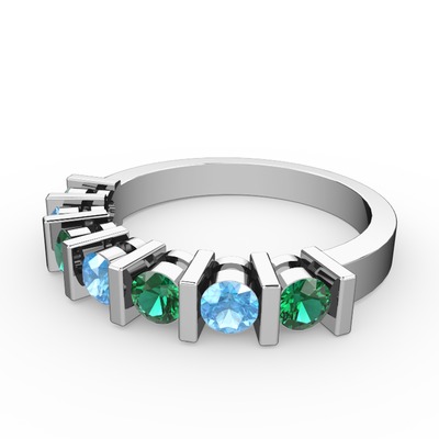 Akuamarin ve yeşil kuvars 14 ayar beyaz altın yüzük