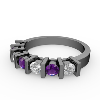 Ametist ve beyaz zirkon 925 ayar siyah rodyum kaplama gümüş yüzük