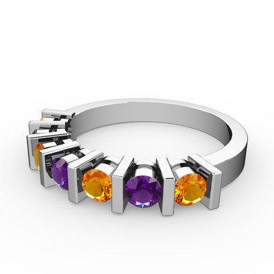 Ametist ve sitrin 8 ayar beyaz altın yüzük