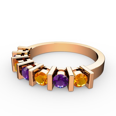 Ametist ve sitrin 8 ayar rose altın yüzük