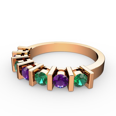 Ametist ve yeşil kuvars 18 ayar rose altın yüzük
