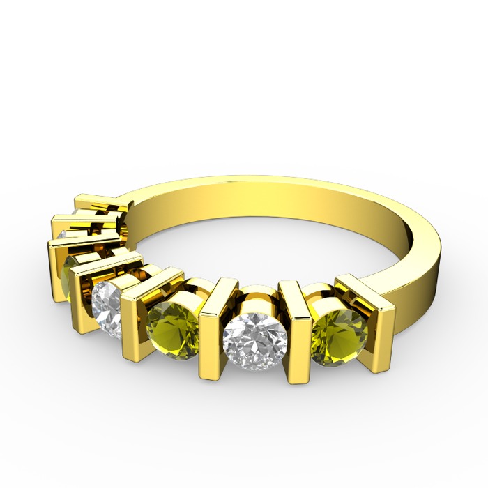 Beyaz zirkon ve peridot 8 ayar altın yüzük