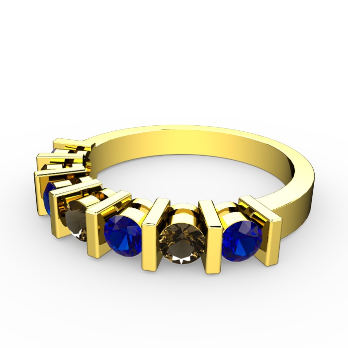 Dumanlı kuvars ve lab safir 925 ayar altın kaplama gümüş yüzük