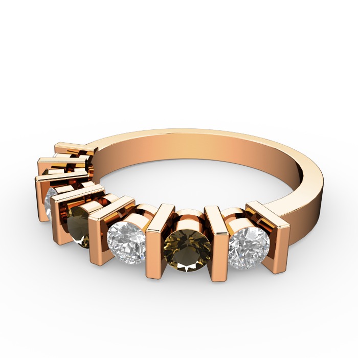 Dumanlı kuvars ve pırlanta 14 ayar rose altın yüzük (0.33 karat)