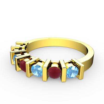 Kök yakut ve akuamarin 14 ayar altın yüzük