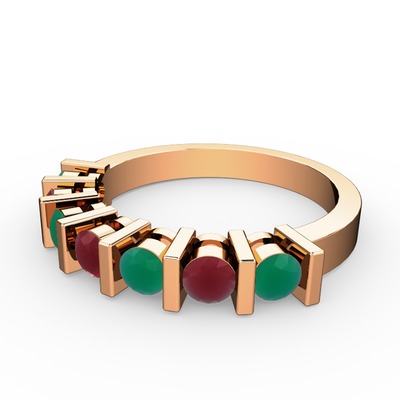 Kök yakut ve kök zümrüt 8 ayar rose altın yüzük