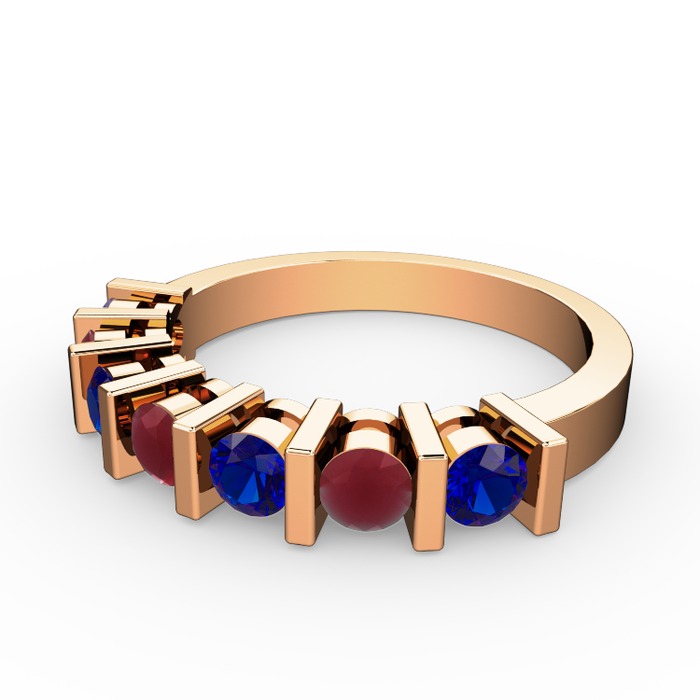 Kök yakut ve lab safir 925 ayar rose altın kaplama gümüş yüzük