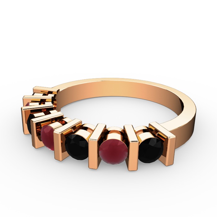 Kök yakut ve siyah zirkon 18 ayar rose altın yüzük