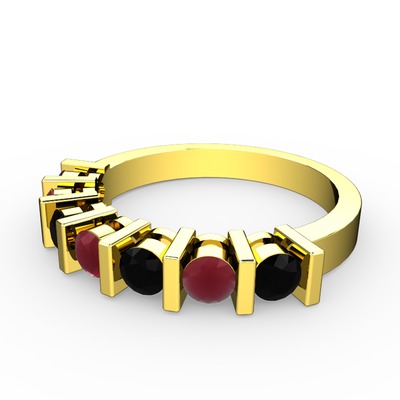 Kök yakut ve siyah zirkon 8 ayar altın yüzük