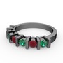 Kök yakut ve yeşil kuvars 925 ayar siyah rodyum kaplama gümüş yüzük