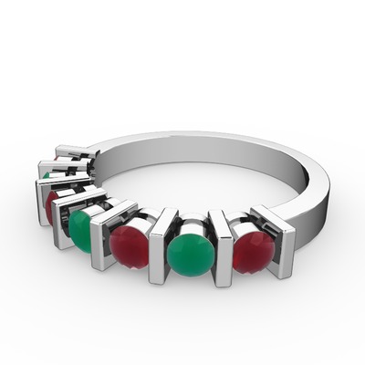 Kök zümrüt ve kök yakut 14 ayar beyaz altın yüzük