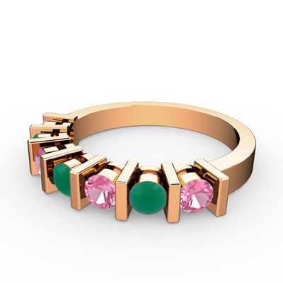 Kök zümrüt ve pembe kuvars 925 ayar rose altın kaplama gümüş yüzük
