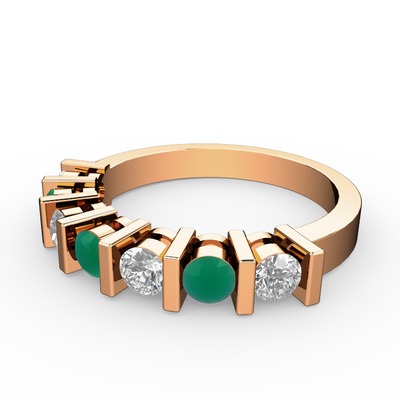 Kök zümrüt ve pırlanta 14 ayar rose altın yüzük (0.33 karat)