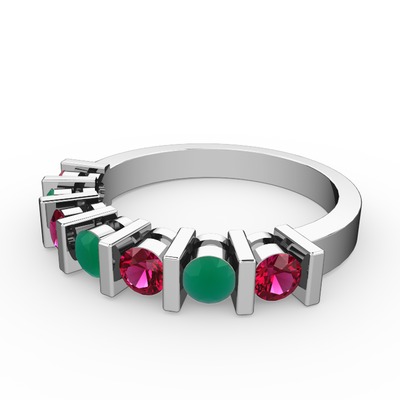 Kök zümrüt ve rodolit garnet 8 ayar beyaz altın yüzük