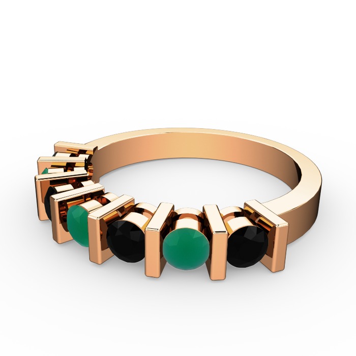 Kök zümrüt ve siyah zirkon 18 ayar rose altın yüzük