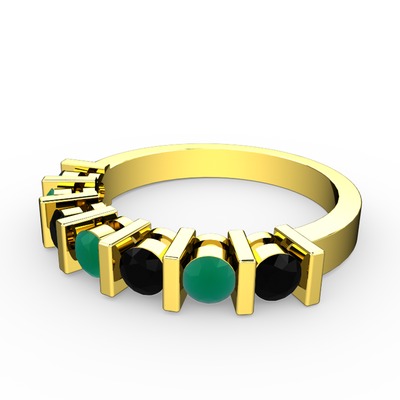 Kök zümrüt ve siyah zirkon 8 ayar altın yüzük