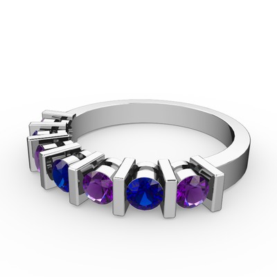 Lab safir ve ametist 14 ayar beyaz altın yüzük