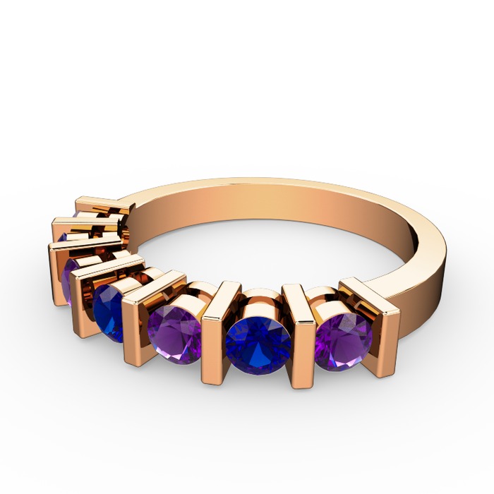 Lab safir ve ametist 8 ayar rose altın yüzük
