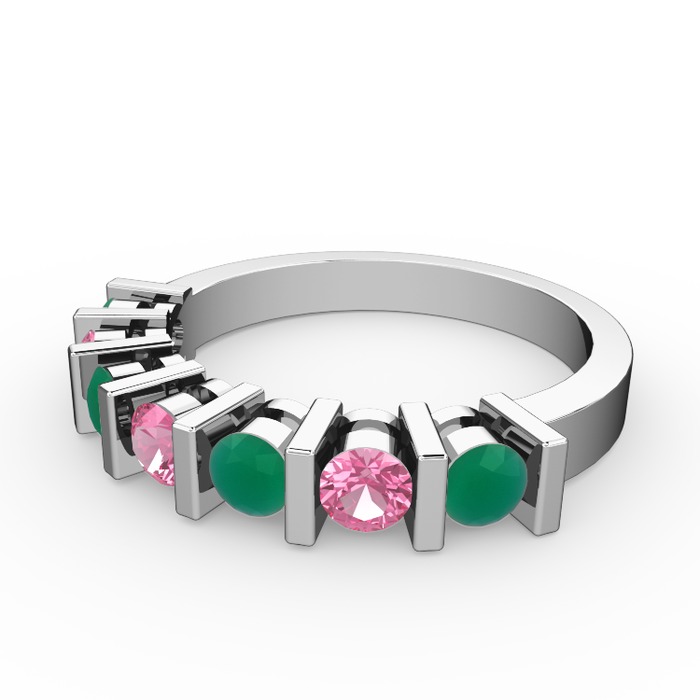 Pembe kuvars ve kök zümrüt 925 ayar gümüş yüzük