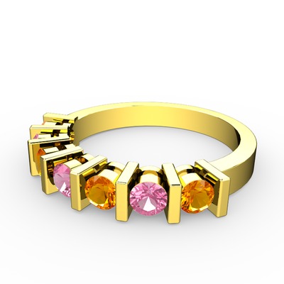 Pembe kuvars ve sitrin 18 ayar altın yüzük