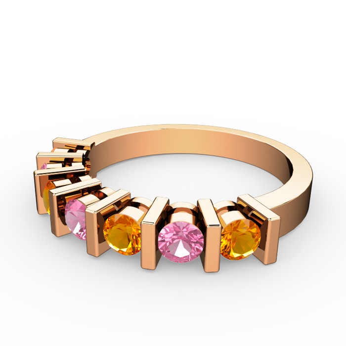 Pembe kuvars ve sitrin 18 ayar rose altın yüzük