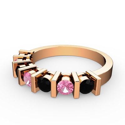 Pembe kuvars ve siyah zirkon 8 ayar rose altın yüzük