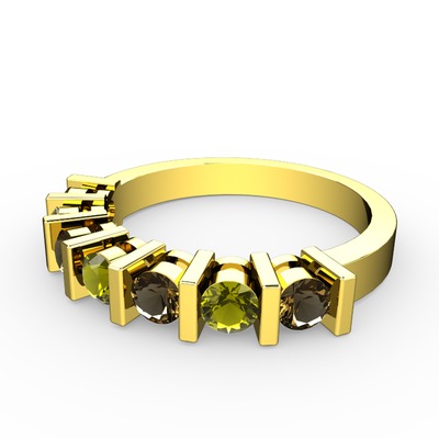 Peridot ve dumanlı kuvars 14 ayar altın yüzük