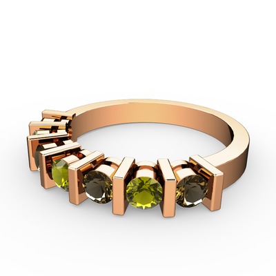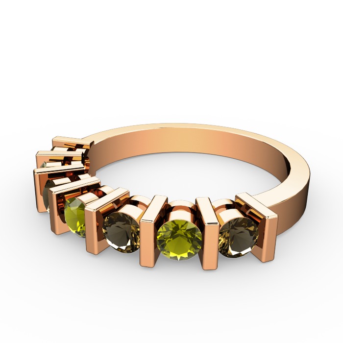 Peridot ve dumanlı kuvars 18 ayar rose altın yüzük