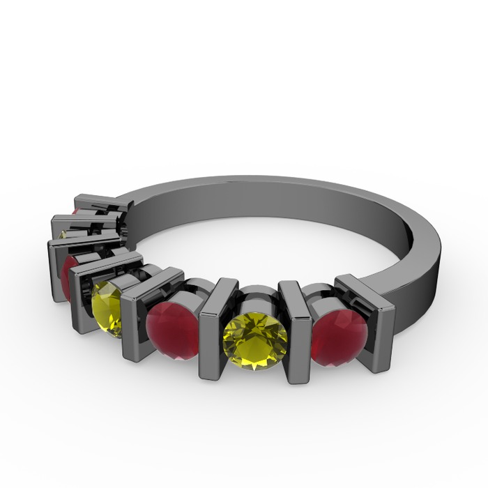 Peridot ve kök yakut 925 ayar siyah rodyum kaplama gümüş yüzük